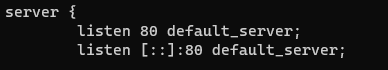 server_name은 도메인 이름을 설정하는 부분이다. 지금은 도메인 이름을 설정하지 않을 것이므로 default로 넘어간다.