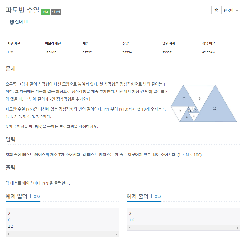 문제 링크 https://www.acmicpc.net/problem/9461
