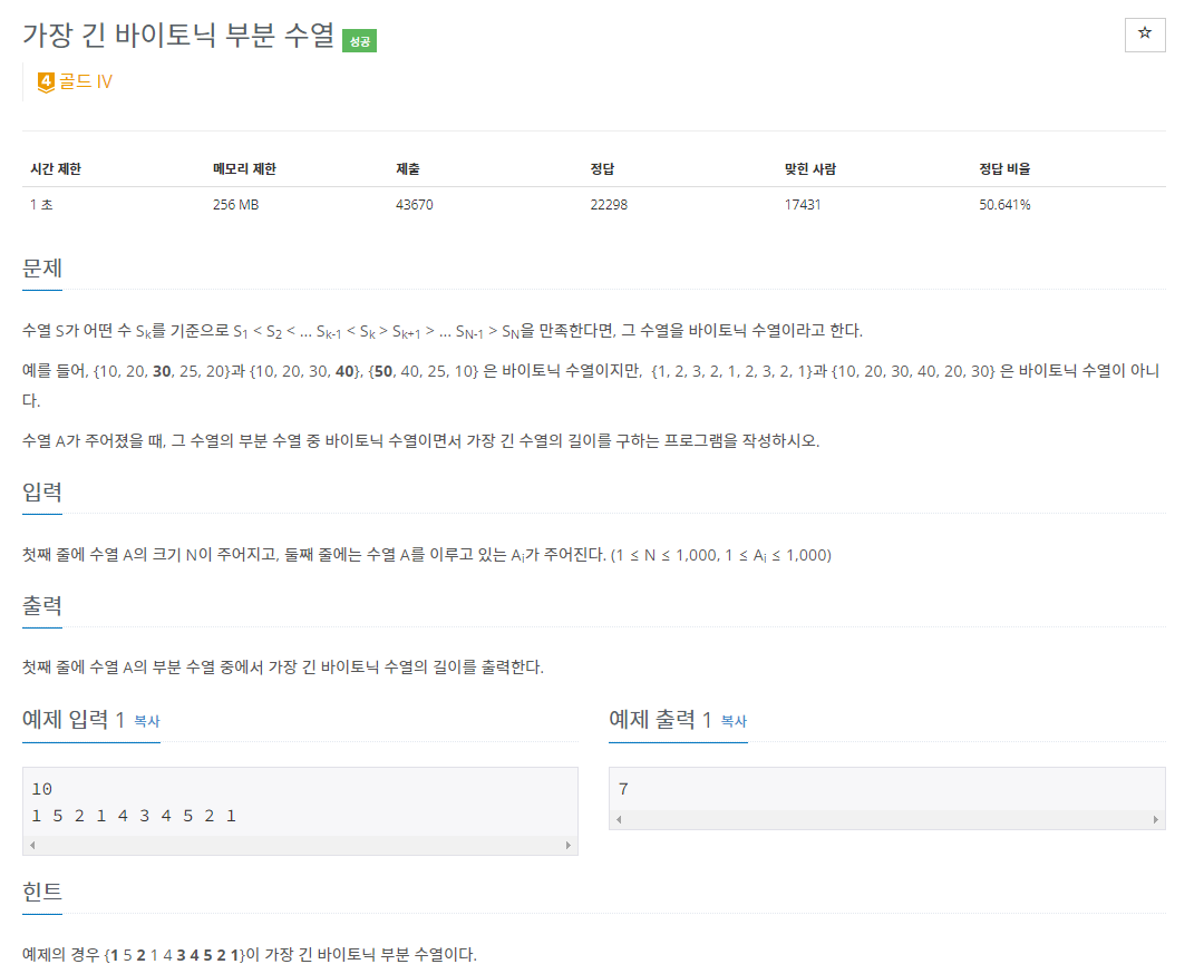 수열을 뒤집어버린다면 결국 가장 긴 증가하는 부분수열의 길이를 2번 구함으로써 문제를 해결할 수 있다.