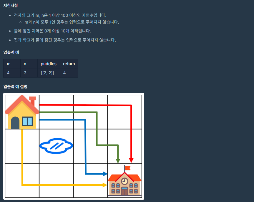 int solution(int m, int n, vector<vector<int>> puddles) {