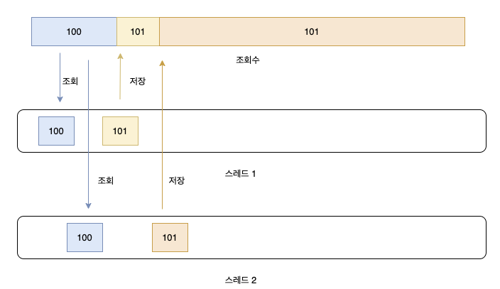 이는 count를 증가시키는 로직이 사실은 아래와 같이 1)count변수 값 조회 2)count변수에 1을 더하고 저장 두가지의 동작으로 이루어지기 때문이다.