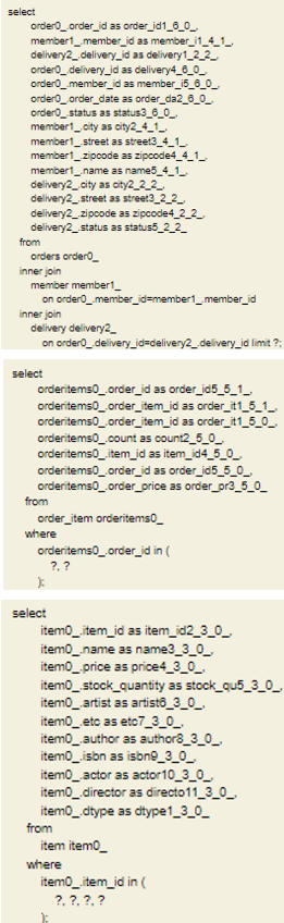 - orderitem을 찾는 과정에서 in절로 모든 orderitem을 가져오는 쿼리 1개