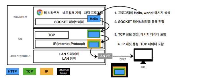 만약, 클라이언트와 서버가 바로 옆에 있다면 케이블로 연결이 가능하다. 하지만, 클라이언트와 서버가 멀리 있다면, 인터넷 망을 통해서 메시지를 보내야 한다.
