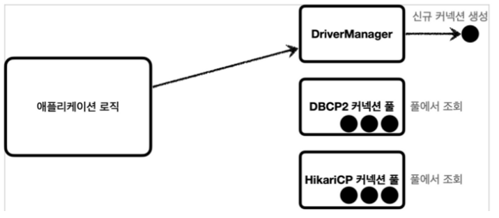 - 사용자의 요청이 들어오면, 애플리케이션 로직에서 이제는 DB 드라이버를 통해서 새로운 커넥션을 획득하는 것이 아니라, 이미 생셩되어 있는 커넥션을 가져다 쓰면 된다.