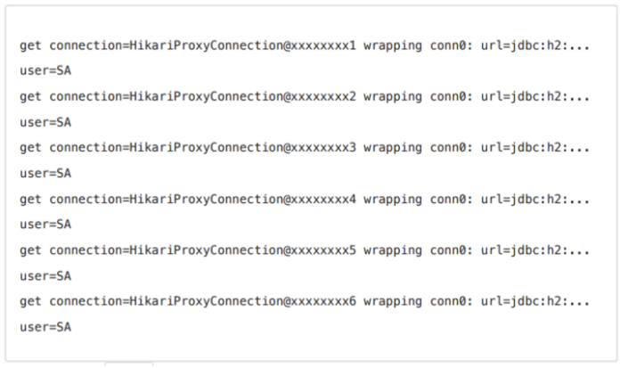 log.info("connection={}, class={}", con1, con1.getClass());