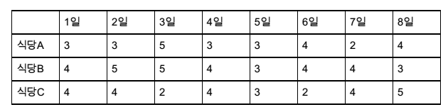 이틀연속으로 같은 식당에서 먹지 않고 8일간 식사를 하는데 드는 최소비용을 구하는 것이다.