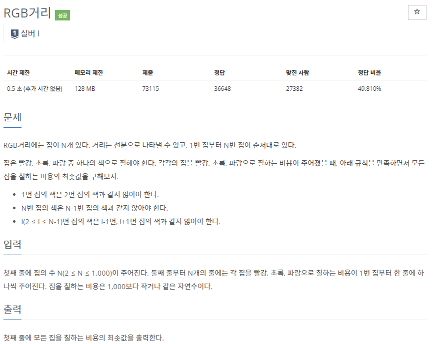 어떤 시점에서 R, G, B각각으로 칠했을 때 누적비용을 비교해주면 된다.