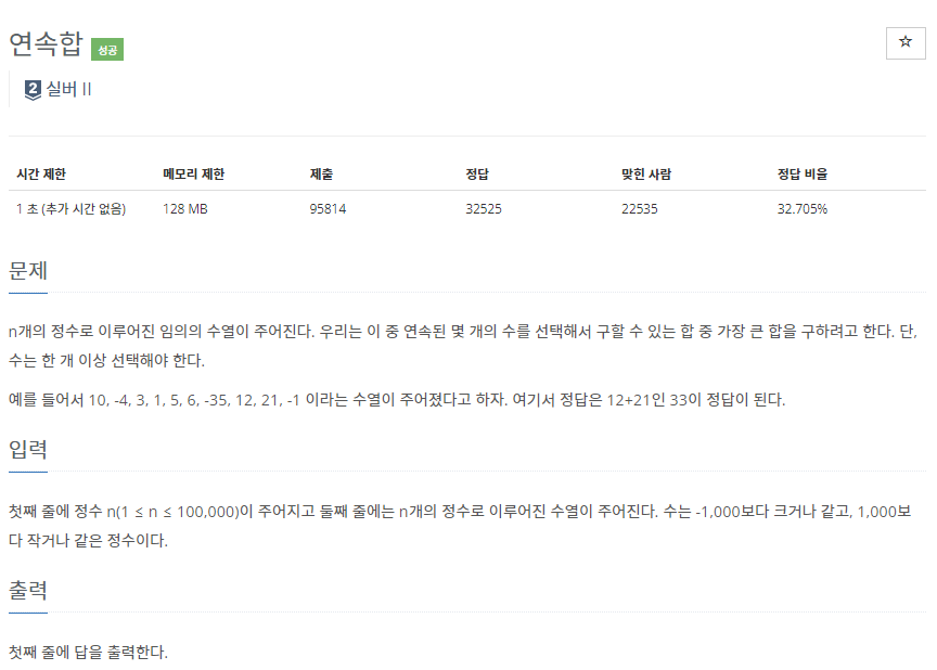 문제 링크 https://www.acmicpc.net/problem/1912