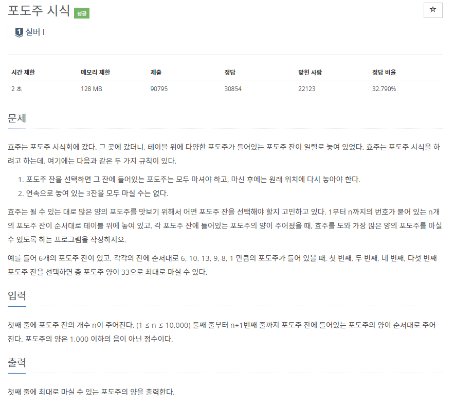 [백준] 계단오르기와 상당히 유사한 문제이다. 계단오르기 문제는 항상 연속 몇칸이상을 못간다는 등의 제약조건이 있다.