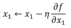 최소로 만드는 입력값을 찾아 나가는 과정에서 입력값을 계속 바꿔나갈 텐데, 기존에있던 입력값 x1에 learning rate와 미분값을 곱한 값을 빼주는 식으로 바꿔나간다.