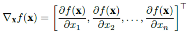 기울기(Gradient): 모든 벡터요소들을 각각 편미분해서 하나의 벡터로 나타낸 것을 gradient라고 한다.
