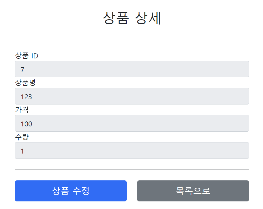 basic/item으로 이동하게 되면, 아래와 같은 상품상세페이지가 나온다. 여기서 문제가 발생하는데, 지금 이 페이지에서 새로고침을 클릭했을 때, id만 하나씩 증가하면서, 같은 상품데이터가 게속 쌓이게 된다.